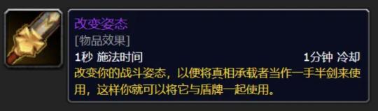 這把武器自帶一個主動技能“改變姿態”可以允許玩家在讀條一秒過後,改變戰鬥姿態把大劍變成單手劍。