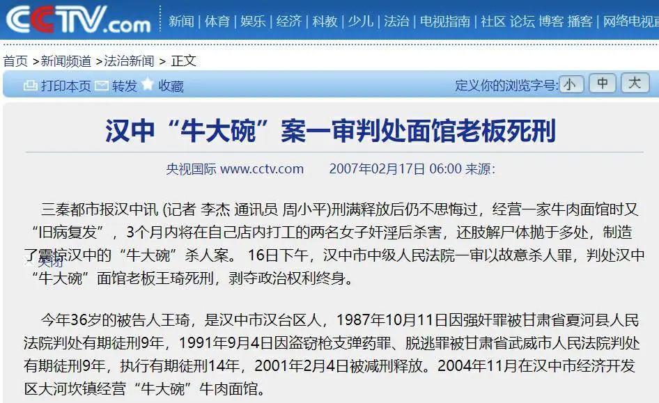 2006年7月,在陝西漢中的“牛大碗”牛肉麪店老闆被指控殺人分屍,該事件引起了公衆的廣泛關注和憤怒。