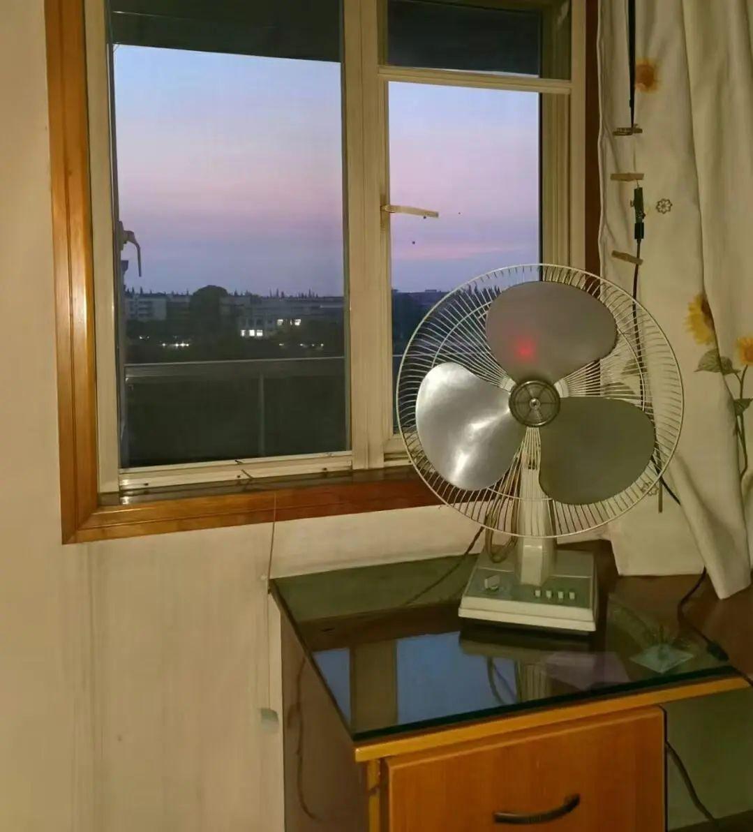 當你琢磨父母出門打牌爲什麼不關電視時,身後的綠色電扇還在擺着頭,轉着圈兒。