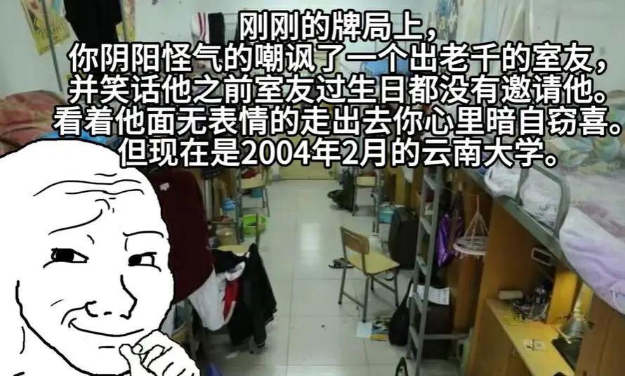 能在2004年的雲南大學宿舍和一位叫做馬加爵的室友打牌,只是後續有四位同學都被馬加爵的石工錘拿下,屍體也被鎖進了衣櫃。
