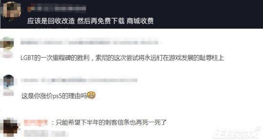 對此有網友表示,應該是回收改造,然後再免費下載,商城收費。還有網友表示,LGBT一次里程碑式勝利,索尼的這次嘗試將永遠釘在遊戲發展的恥辱柱上。還有網友調侃,這是你漲價ps5的理由嗎?還有網友表示,只能希望下半年的《刺客信條》也再死一死了。