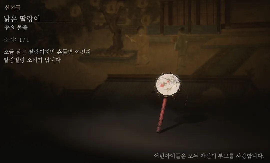 我記得遊戲裏有個撥浪鼓,但韓國人完全不認識這個東西。這個時候再堅持寫撥浪鼓就不太合適了,所以我們翻譯成了韓國玩家比較熟悉的、類似的兒童玩具,但保證翻譯內容和遊戲實際畫面(撥浪鼓),是對得上的,不會誤導玩家理解成鈴鐺或其他不相關的物品。
