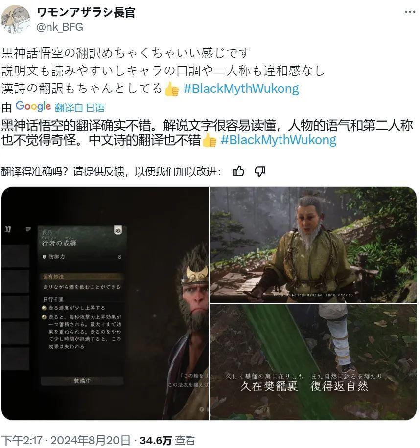 葡萄君:遊戲發售後,我看不少日本遊戲圈大佬都發推給《黑神話》好評。