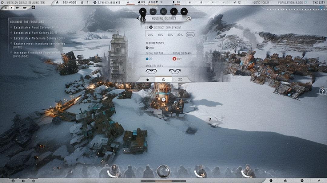 遊戲的背景設定在毀滅性暴風雪平息後的30年,永無止盡的冰天雪地依舊覆蓋着這片大地。玩家將扮演一個資源匱乏的大都市的領袖。在這裏,擴張和內部衝突是不可避免的現實,因此每個人都要爲自己城市的未來做出決策並承擔後果。本作最大的特色就是玩家需要作爲執政者遊走於派系之間。隨着城市的發展,制定和通過新法律變得越來越複雜,人們也慢慢分化成不同的派系。作爲執政者,我們的職責就是確保城市不會因爲這些人類的衝突而衰亡,並在設法應對新出現危機的同時,同時引領人類走向新的命運。