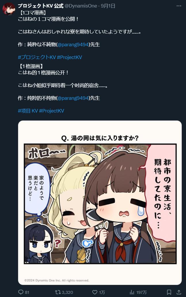 在始動宣傳之後,《KV》還開始連載官方漫畫,可令人疑惑的是,《KV》尋找的漫畫家不純物,恰好也是《BA》官方四格的漫畫家,不僅沒有避嫌的意思,反倒有意讓《KV》與《BA》相併列。