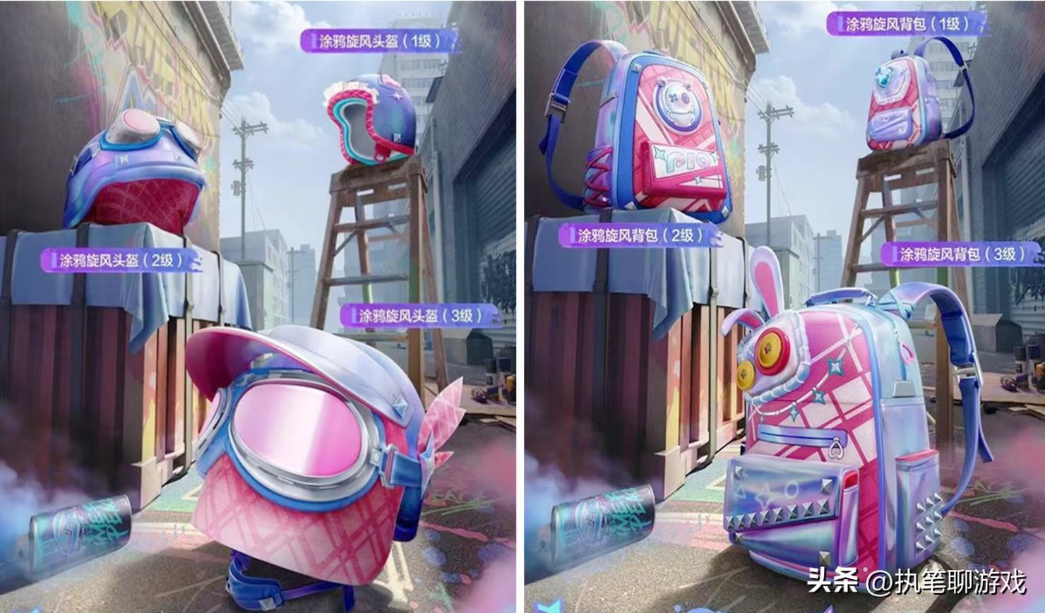 但是頭盔、揹包的顏值就讓人一言難盡了,頭盔當中只有3級頭能拿得出手,粉紅色的護目鏡在遊戲中較受歡迎,而揹包則是差強人意,版型設定以及圖案、顏色等,只能與平日裏的福利相提並論,就連手冊尋寶都無法與之相比。