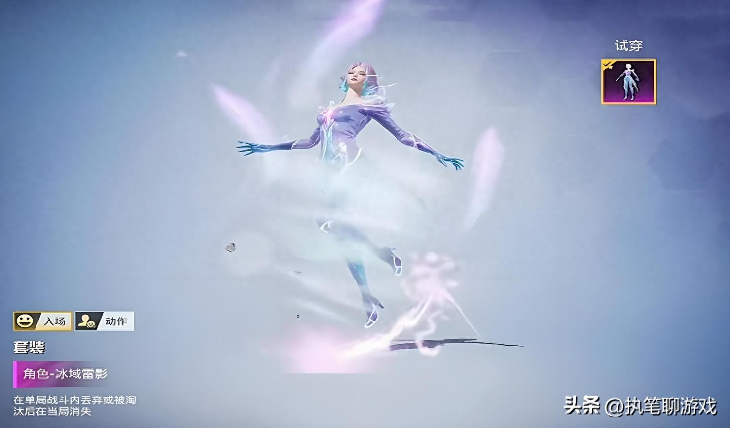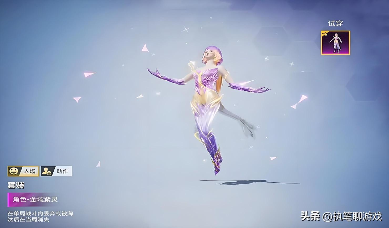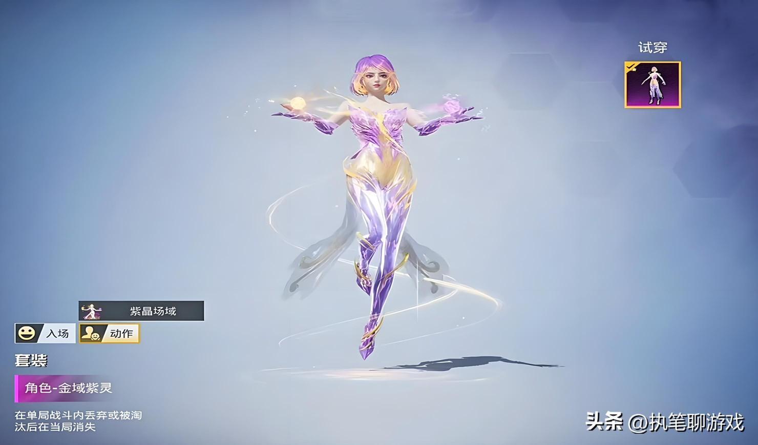 接下來出場的新角色被命名爲“金域紫靈”,顧名思義,角色的套裝以紫色爲主,看似普通的服飾,卻有着非同一般的材質構成,像極了紫色的冰晶特效。