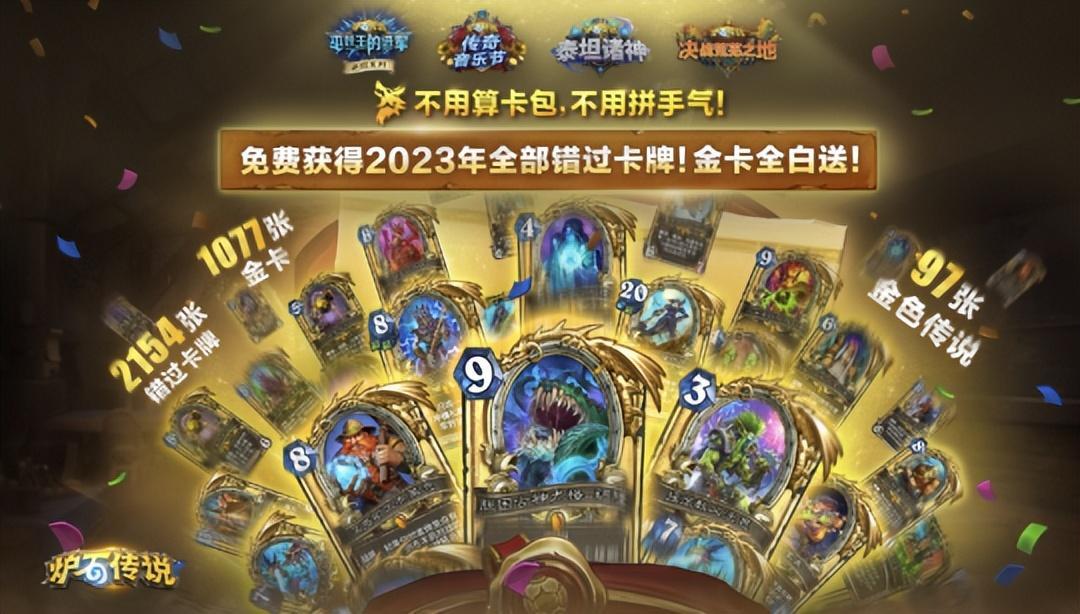 因爲國服這邊一口氣送出包括了1077張金卡、97張金色傳說卡牌在內的2023全年2154張卡牌,以及40包“威茲班的工坊”卡牌包、20包“勝地歷險記”卡牌包、“天空慈母艾維娜”異畫傳說卡牌、“凱琳·凝眸”英雄皮膚、“莉莉安.辛恩”酒館調酒師等豐厚獎勵的關係,吸引了很多玩家的關注。