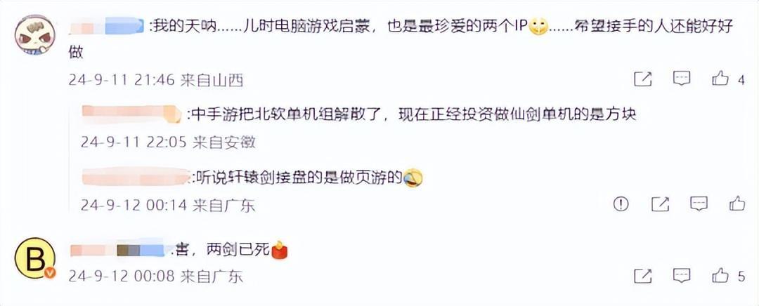 對此,很多網友在聽聞後都表示自己的青春結束了,小時候最珍愛的遊戲說賣就賣了。但也有人持有樂觀態度,覺得大宇明顯沒有實力繼續做仙劍跟軒轅劍的新作研發,賣給有實力的接盤俠去做3A未嘗不是一件好事。
