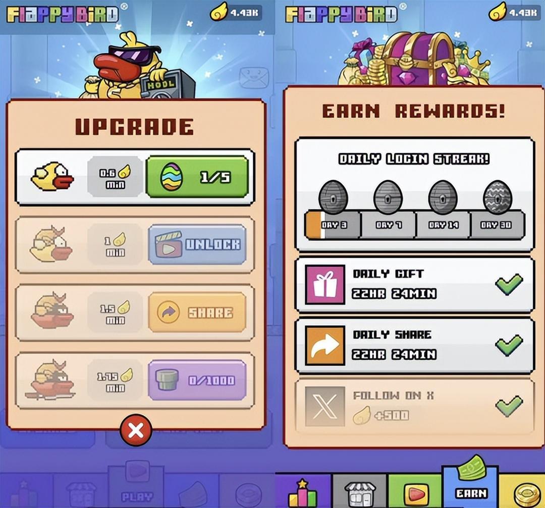 最後的最後,Flappy Bird 基金會放出了復活後的《Flappy Bird》宣傳圖,正如很多人猜測得那樣,它被加入了大量氪金跟Web 3.0項目,赤果果地想要割老粉絲的韭菜。