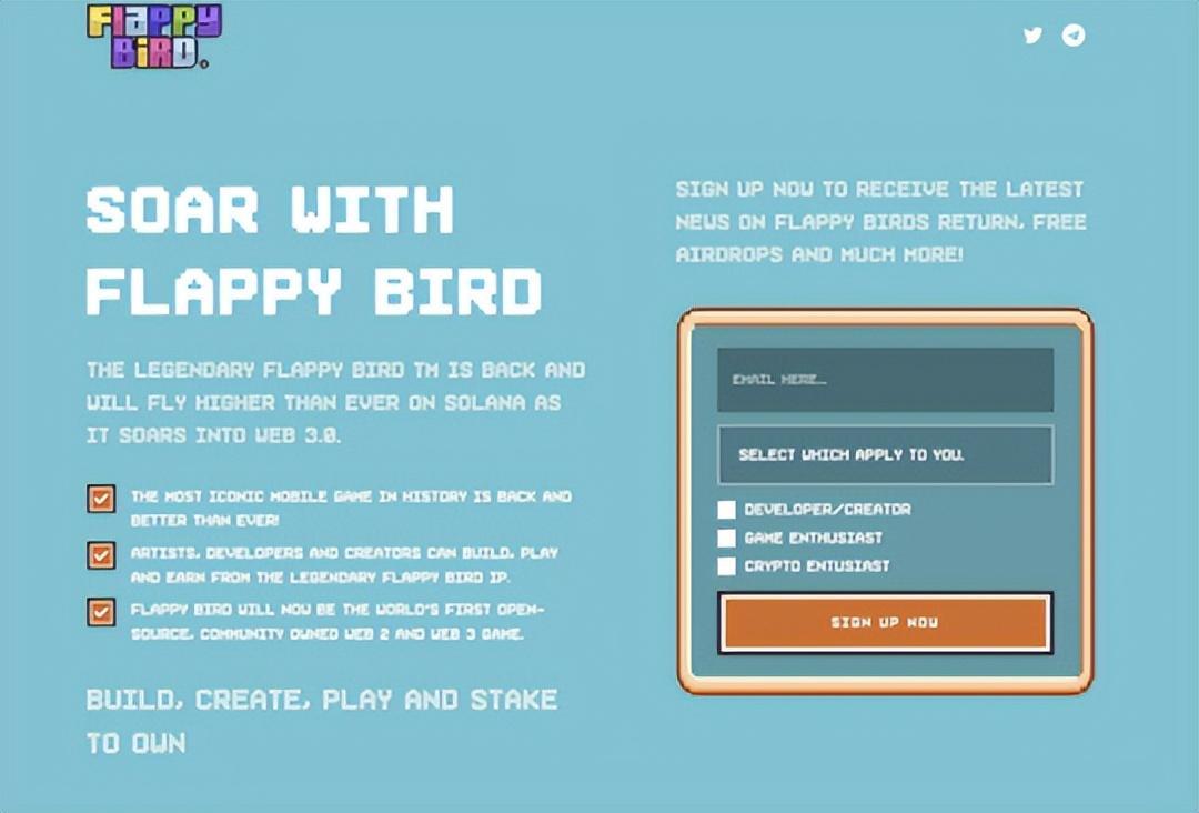 原來該遊戲宣佈復活的消息,並沒有引起很多人的關注,畢竟類似的休閒遊戲市面已經有了一堆,但有人扒出Flappy Bird 網站的隱藏界面,有大量提及 Web 3、加密貨幣的信息。