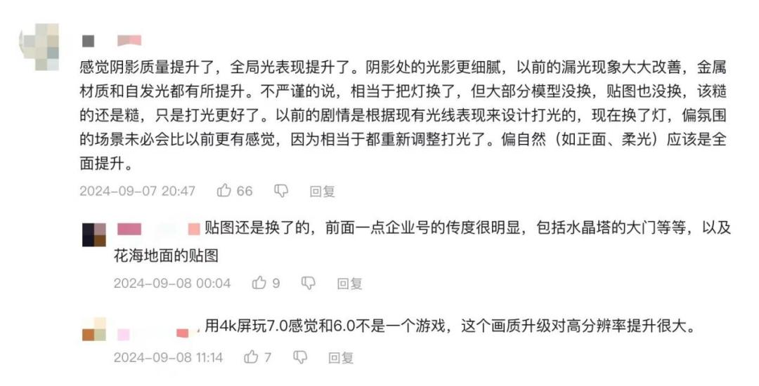 FF14起初是一款PS3遊戲,以往沒做過明顯的畫面升級。但在這次新版本中,FF14在色彩、光效、分辨率、材質、紋理等方面,都有了明顯優化,洗掉了不少「一眼年代感」的古早味兒。
