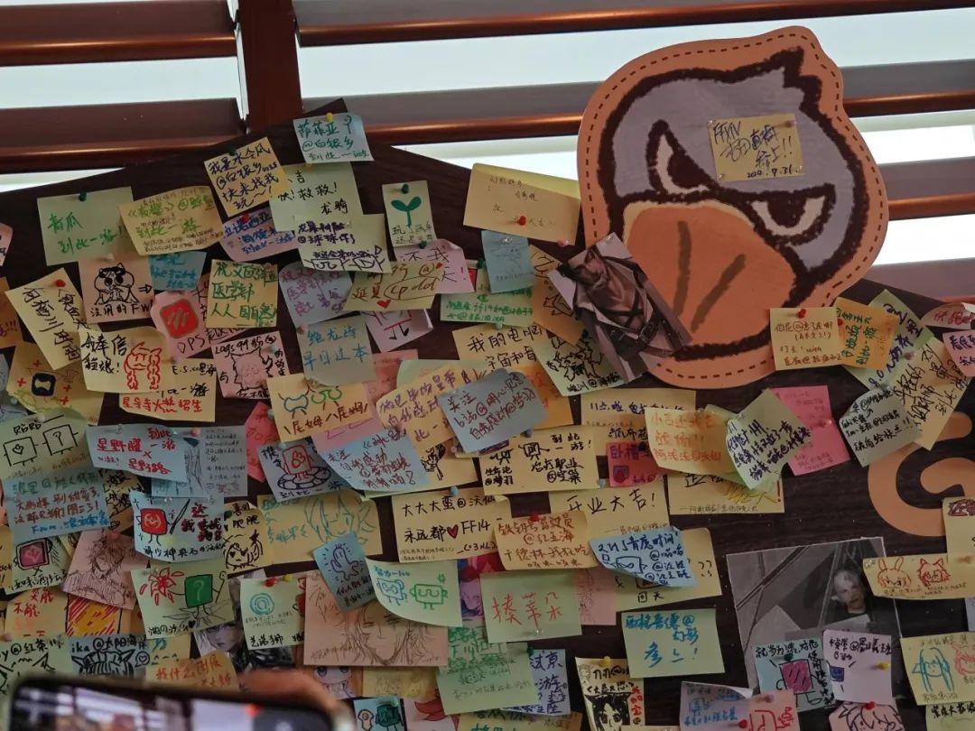 左右滑動查看。廣州海德林咖啡廳,留言牆右上角有吉田手寫留言。