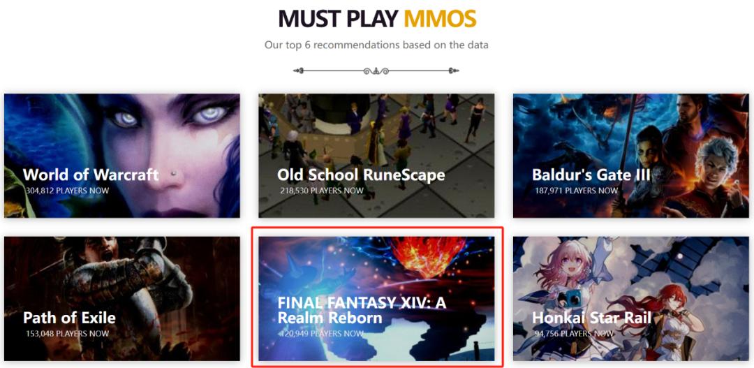 海外調查機構MMO Populations,根據數據推薦的6大必玩MMO,FF14赫然在列。