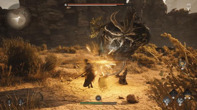 個人體驗中,難的地方在於BOSS的進攻慾望很強,出招速度快,而且還有二階段「近→遠;物→魔」的攻擊模式轉變,不像同類遊戲中很多中大體型BOSS既笨重又喜歡繞着玩家轉,所以很難把握輸出時機和對應招式。對比來說,有點類似《血源》第一關BOSS神父給新手的壓迫感。