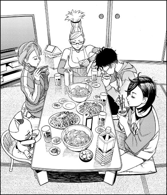 作者龍幸伸非常執着於主角團最後一刻坐在一起喫飯的畫面。