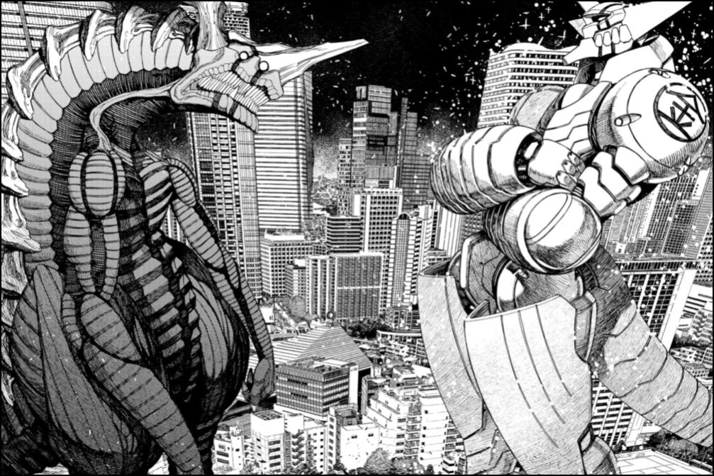 在《當噠當》裏不僅僅有男女主使用超能力/附身對戰,還有外星人與惡靈對轟,機械如來大戰怪獸哥斯拉,EVA大戰外星暴龍……