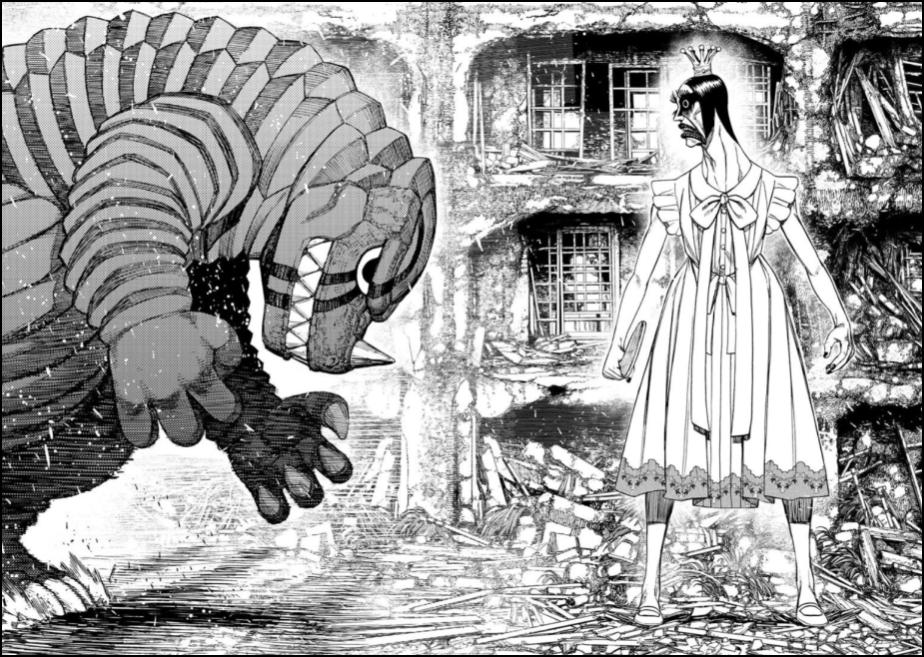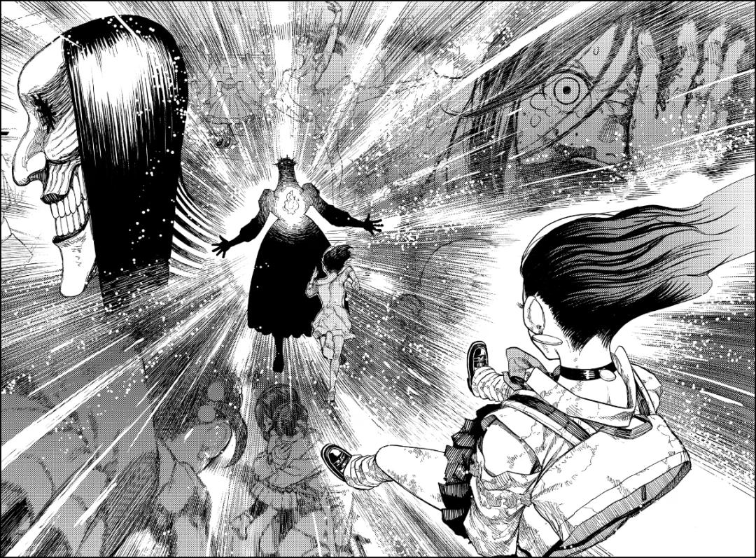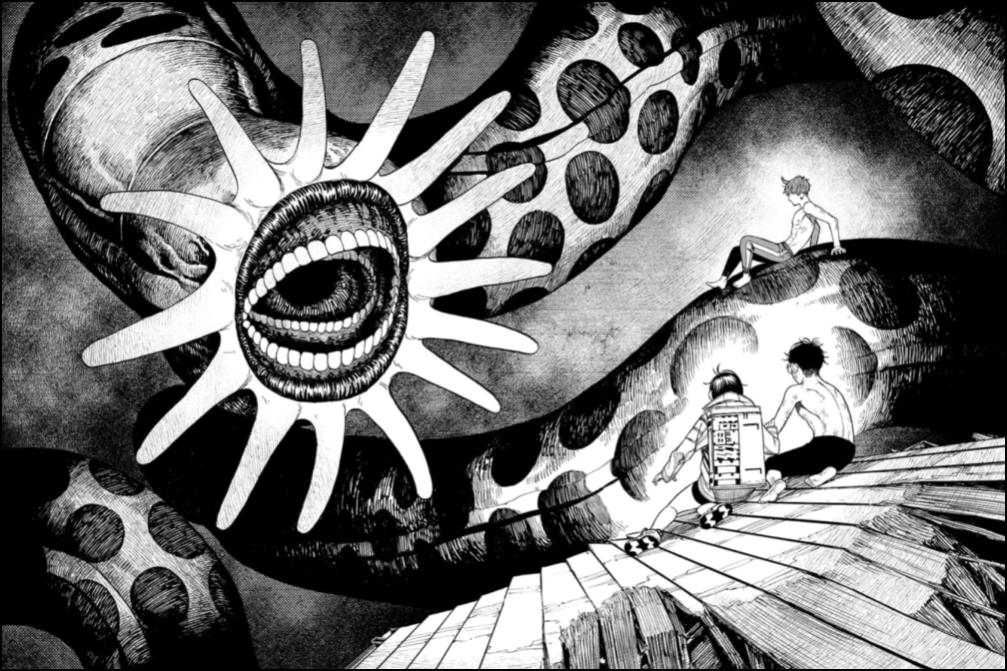 提到這個往事是爲了更方便後續展開,多虧有《貞子大戰伽椰子》這麼一部抽象的“怪物 vs 怪物”電影,龍幸伸算是敲開了大門,開始將自己的各種腦洞都賽到漫畫之中。