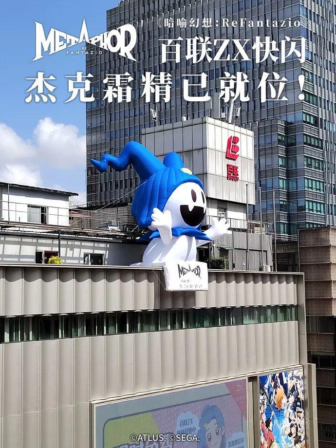 10月11日,《暗喻幻想:ReFantazio》就要發售了。在假期裏,上海南京東路的百聯ZX會舉辦限定快閃活動,商場樓頂已經擺上了大型的傑克霜精,路過的小夥伴可以注意拍照留念哦~