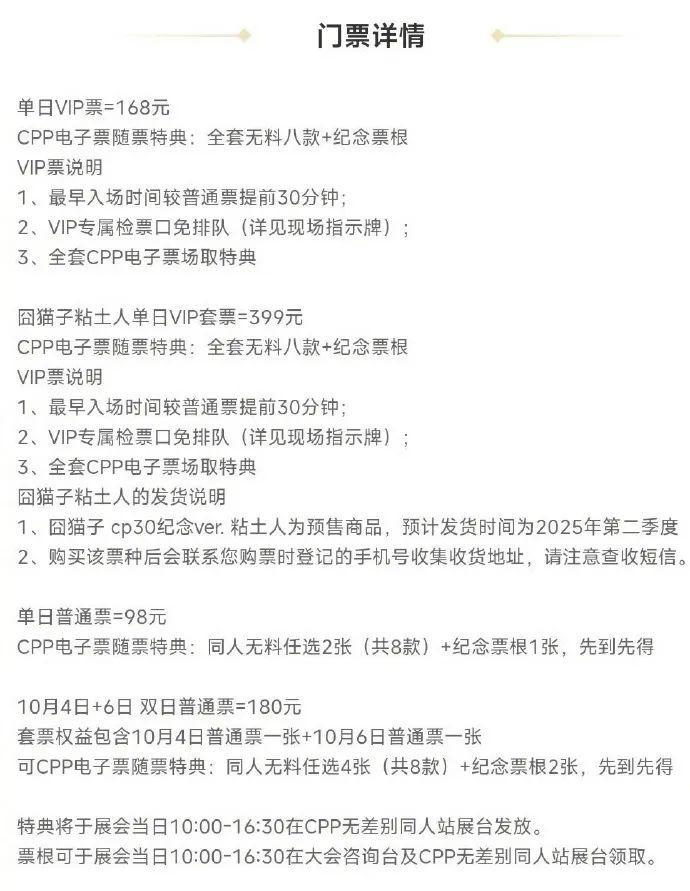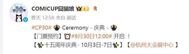 國慶到了,定在國慶假期舉辦的CP30也即將開幕,不過眼看離開幕都沒幾天了,CP官方此前卻一直沒有公佈門票售賣的消息,這讓許多準備參展的網友頗爲不滿。直到昨天(9月29日),CP官博才宣佈了票價和售賣方案。