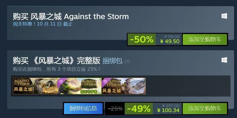 更重要的是,恰逢發行商折扣活動,《風暴之城》打折到了新史低,僅售49.5元,這應該是近期入手的最好時機了。