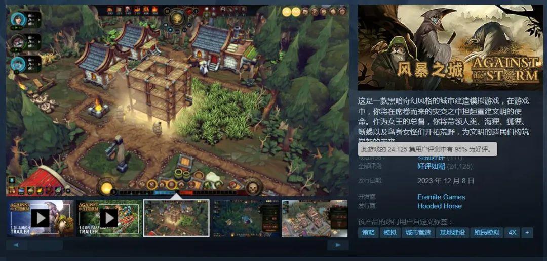 在《風暴之城》去年轉正的時候,我們也提到過。這是一款西方奇幻主題,融合了模擬經營、肉鴿玩法的城市建造遊戲,好評率高達95%。雖然玩起來有點燒腦,但絕對殺時間,適合假期消遣。