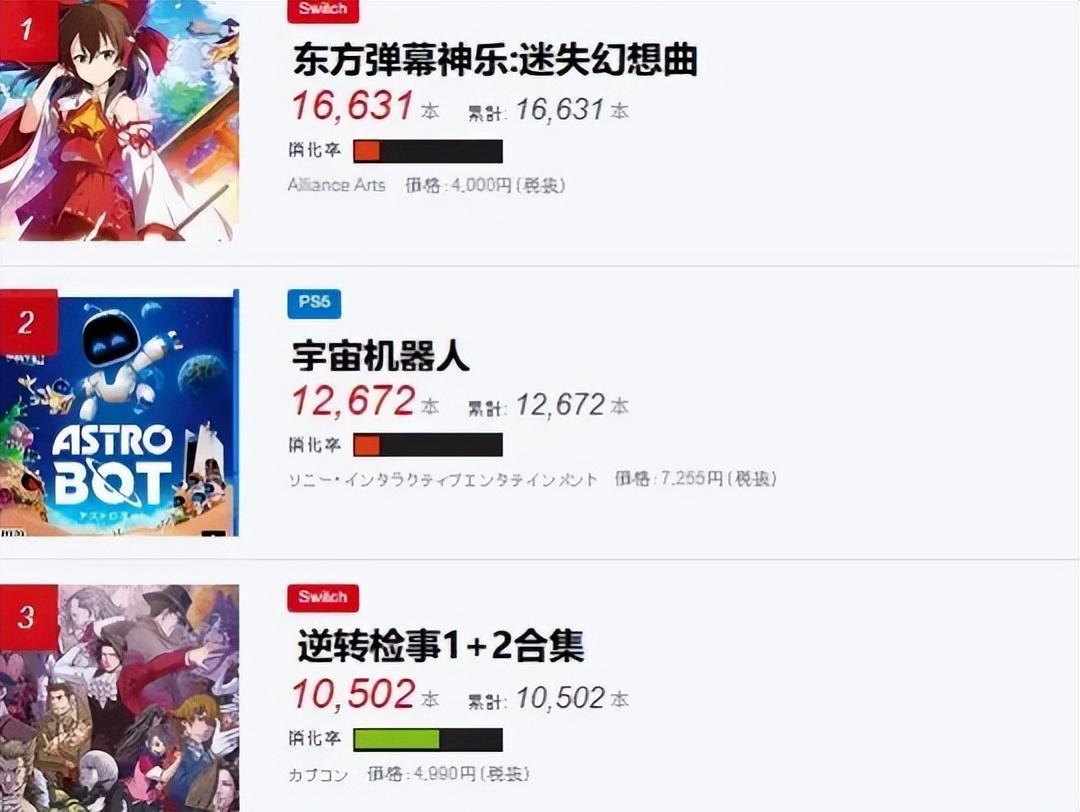 如果給他做個對比項的話,就近舉例《宇宙機器人》,發售時榜單也只給到了12672份的銷量,這麼看來20w也算是挺多的了。