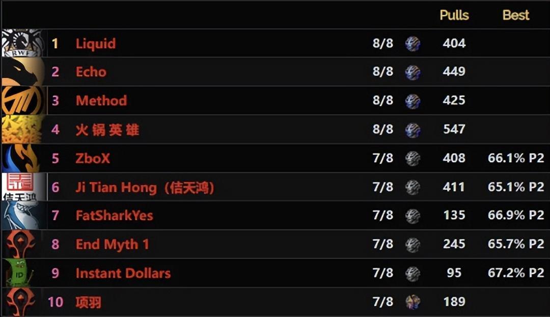 畢竟跟後面卡老七的公會相比,火鍋英雄如果不是因爲亞服CD更新較慢的關係,還是有可能衝擊世界前三,且在前六個BOSS爭奪上給到了歐美公會一定的壓力。