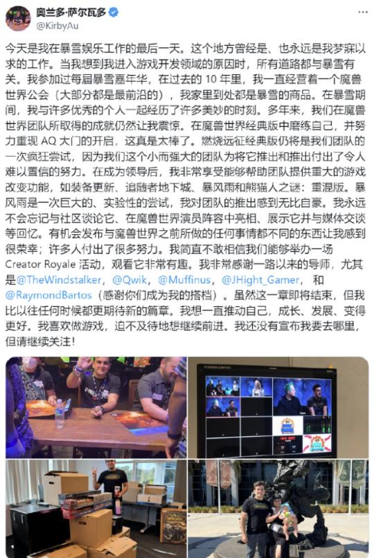 受到9月微軟裁員潮的影響,近日暴雪魔獸世界首席軟件工程師Orlando Salvatore宣佈離職。據悉,此人是暴雪內部爲數不多玩遊戲的設計師,領導着一個魔獸尖端副本團隊,並參與了懷舊服香草時代、TBC版本的研發,主導了強襲風暴、幻境重生這些魔獸新玩法的出爐。