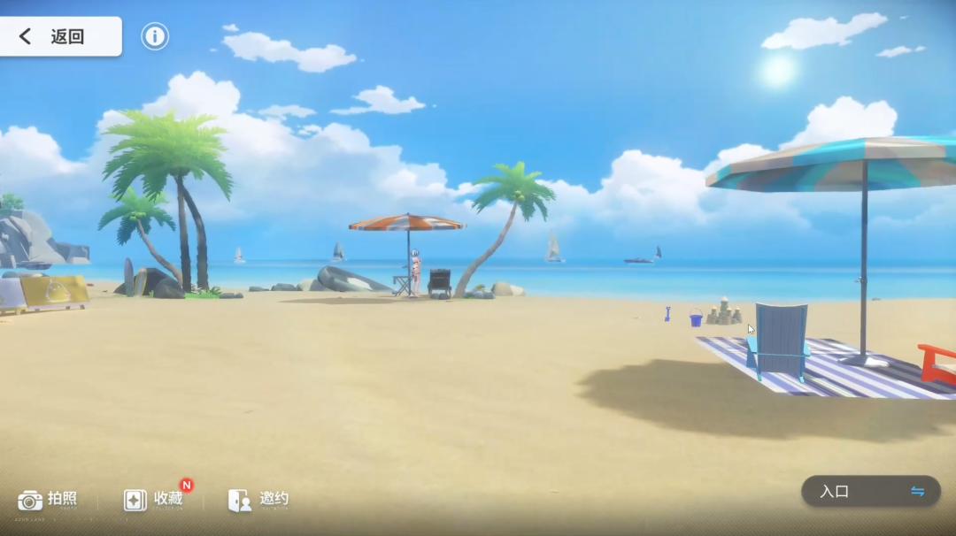 解鎖之後,玩家能在劇情互動和小遊戲與角色近距離互動。比如和她對話聊聊日常,聽她吐露對玩家的心聲;又如邀請到沙灘上進行一次約會,期間也能體驗「動感」的排球小遊戲;又或者邀請她共舞一曲,累了再一起坐下休息片刻……這些互動玩法中不僅包含大量讓玩家喜聞樂見的福利,進一步講,還能在很大程度上擴展角色的細節設定,比如言行舉止性格喜好,以及更重要的「對玩家的態度」。