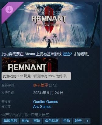 你看Steam商店,會發現這幾個DLC的評價都不高。新出的「黑暗的視界」好評率已經被轟炸到了39%,被評爲“多半差評”,再往後退一步,就是無盡深淵。