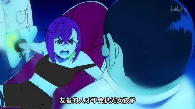 因此,考慮到這動畫的敏感畫面內容較多,爲了和諧,B站除了將臺詞裏的“香蕉”替換成“器官”以外,一些只穿內衣的畫面也被簡單粗暴地加上了黑色小背心和短褲,非常前衛,非常炫酷。