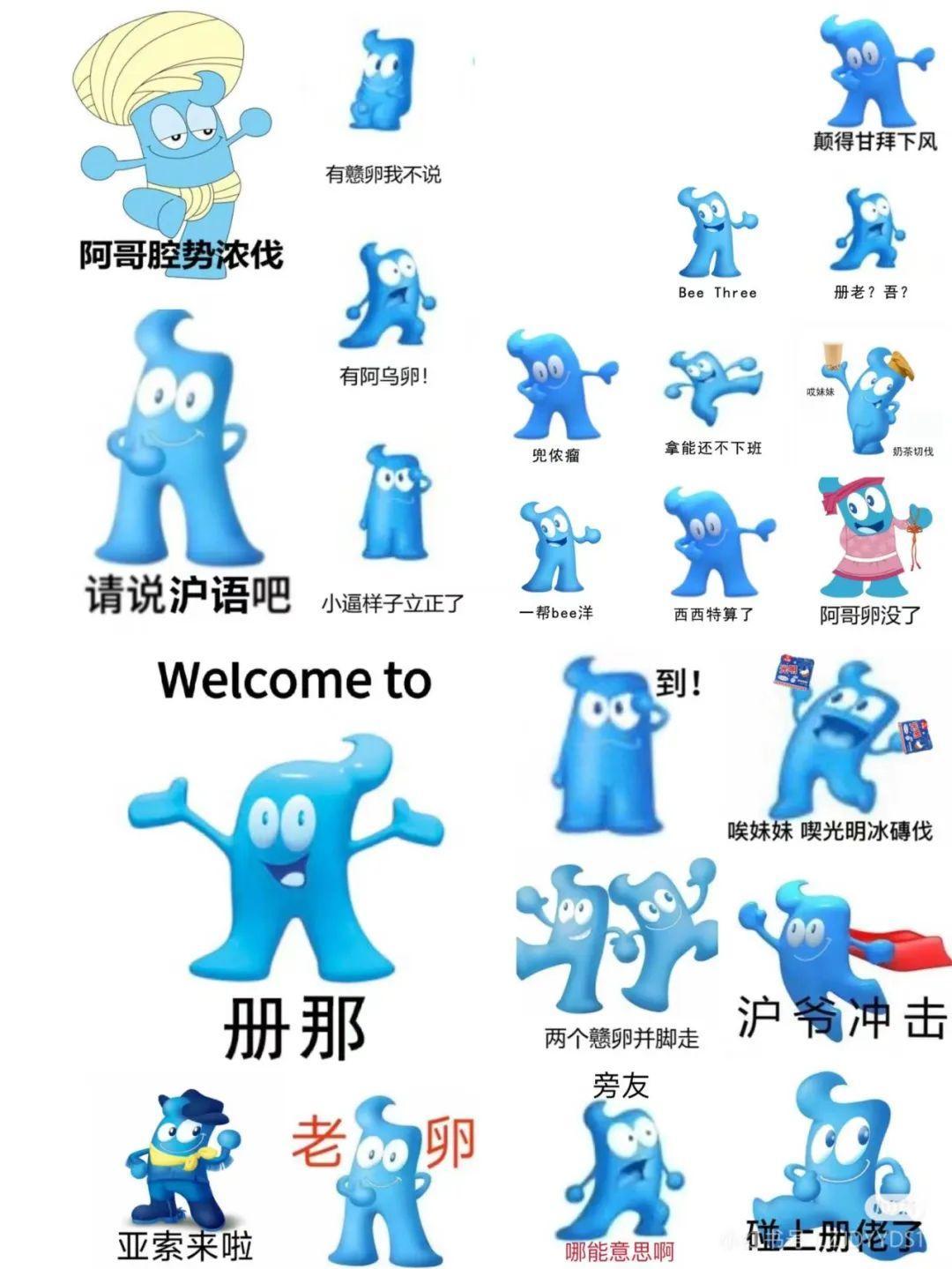 當時,恰逢“海寶”表情包在小範圍裏有了新的討論度——海寶是2010年上海世博會的吉祥物,有人給各種姿勢的海寶,P上上海話裏賤賤語氣的短語,用來表達日常心情。