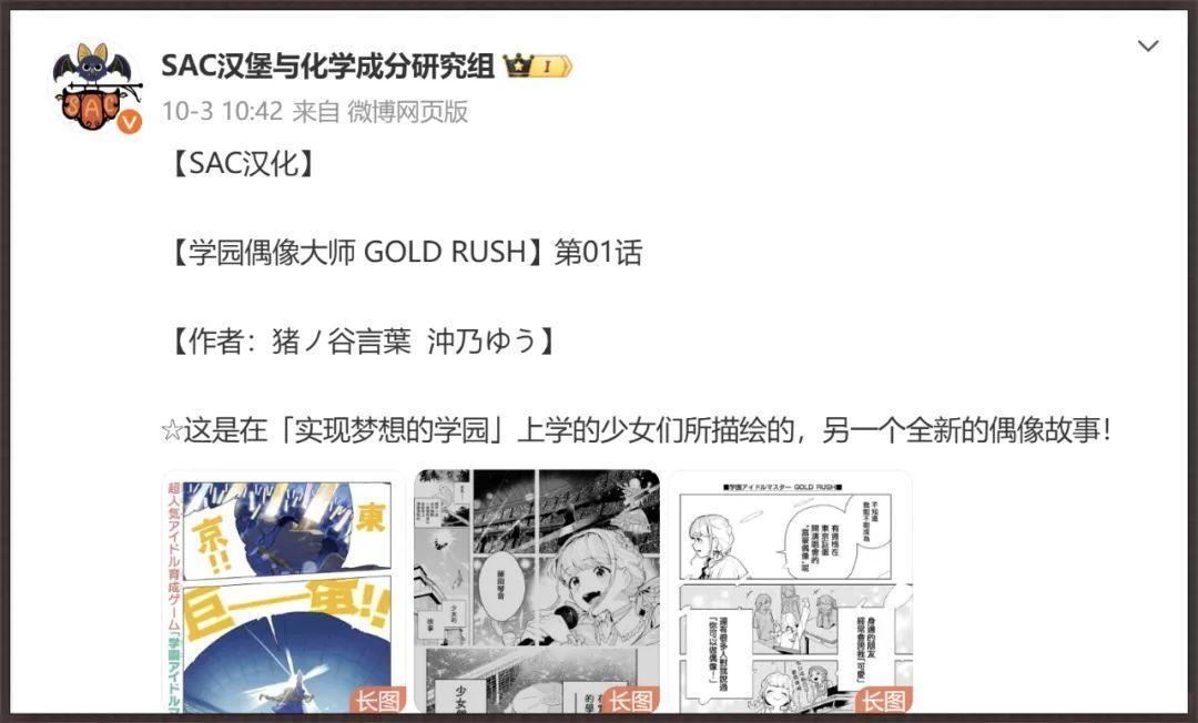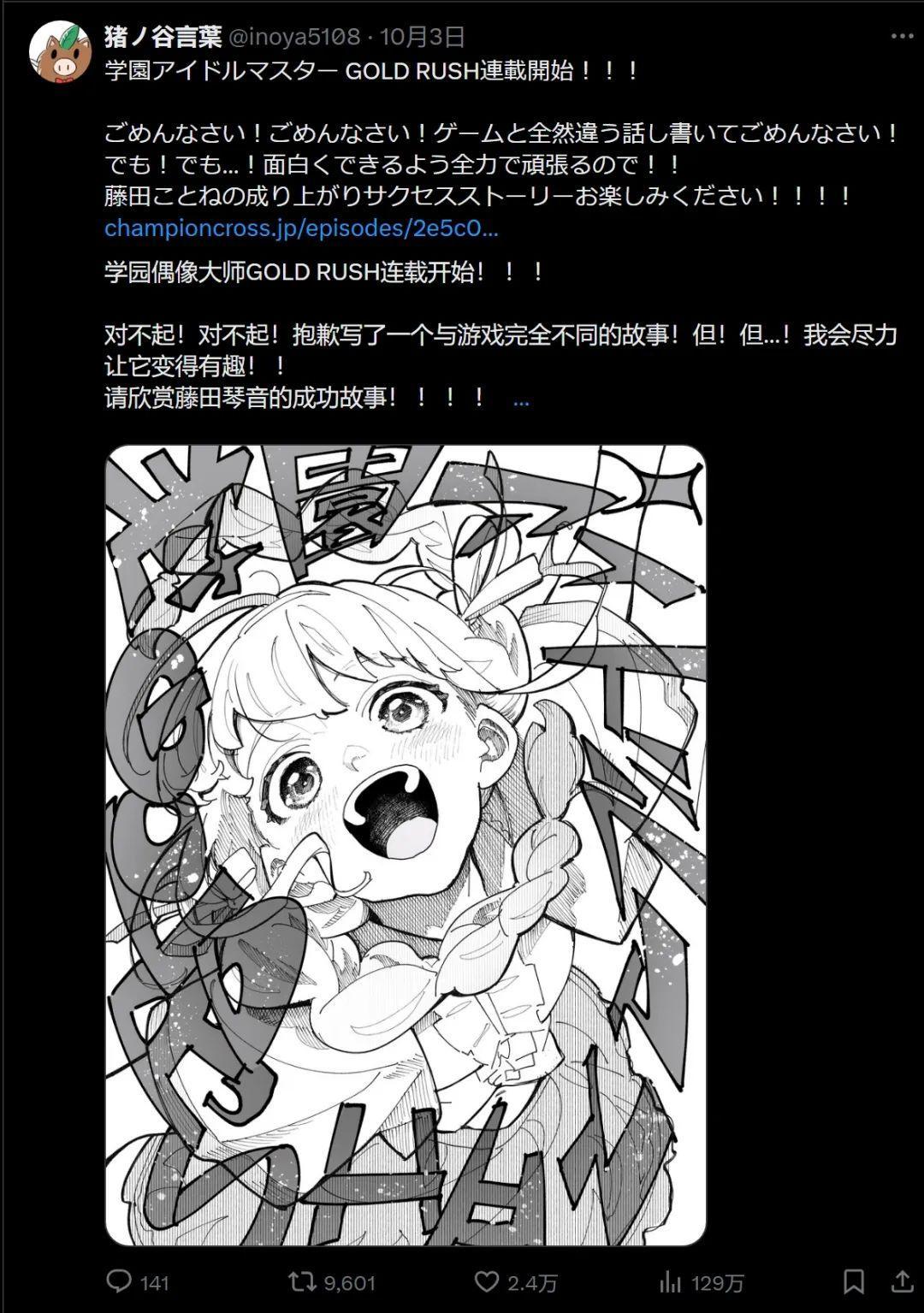 推薦一下新開連載的《學園偶像大師 GOLD RUSH》漫畫,以“藤田琴音”爲主角,講述跟手遊不同世界線的故事。