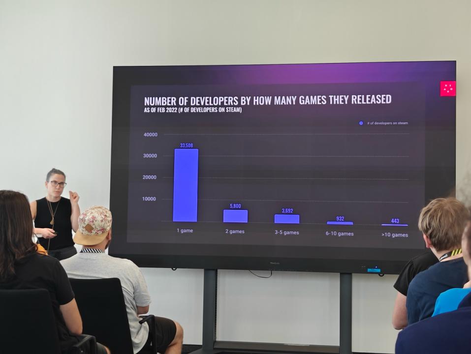 現在讓我們來看一些關於行業的數據。從2022年開始,我們現在所處的市場上有超過500萬款遊戲,80%的遊戲未能獲得任何形式(不僅是投資和發行)的資金支持。2023年,僅在Steam平臺上就發佈了14000款遊戲。而且,Steam上50%的遊戲的收入從未超過4000歐元。