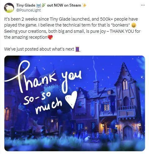 Steam“好評如潮”的城堡建造遊戲《林間小世界》於今日(10月9日)發佈了一篇新博文,宣佈遊戲的玩家數量已突破50萬,並衷心地感謝了玩家的熱情接待和支持。