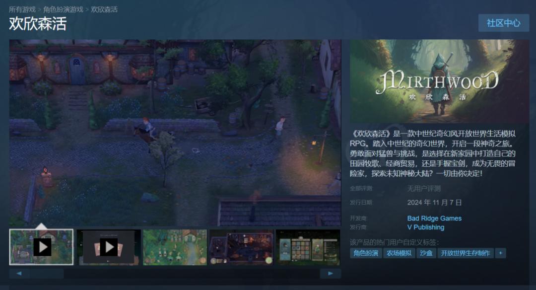 如果你想嘗試一款中世紀版《星露穀物語》,那我的建議是來看看這個——《歡欣森活(Mirthwood)》。