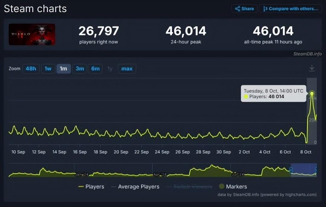 目前遊戲Steam上的玩家人數暴漲,最高同時在線達到四萬六千多人,但是遊戲好評率卻只有48%。