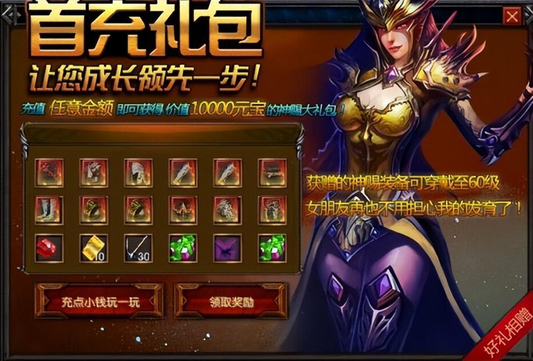 遊戲活動包括多種:每日首充加次充累計達15日可領禮包;單筆5000送豪禮,玩家單筆充值5000獲禮包;累積5000送豪禮,開服15天內小額充值累積滿5000有禮包;消費送豪禮,消費至相應數額可領取獎勵;新服消費福利,開服15天內消費可領取消費獎勵加活動福利;在線福利,開服10天內每天累計在線指定時間可獲對應獎勵。