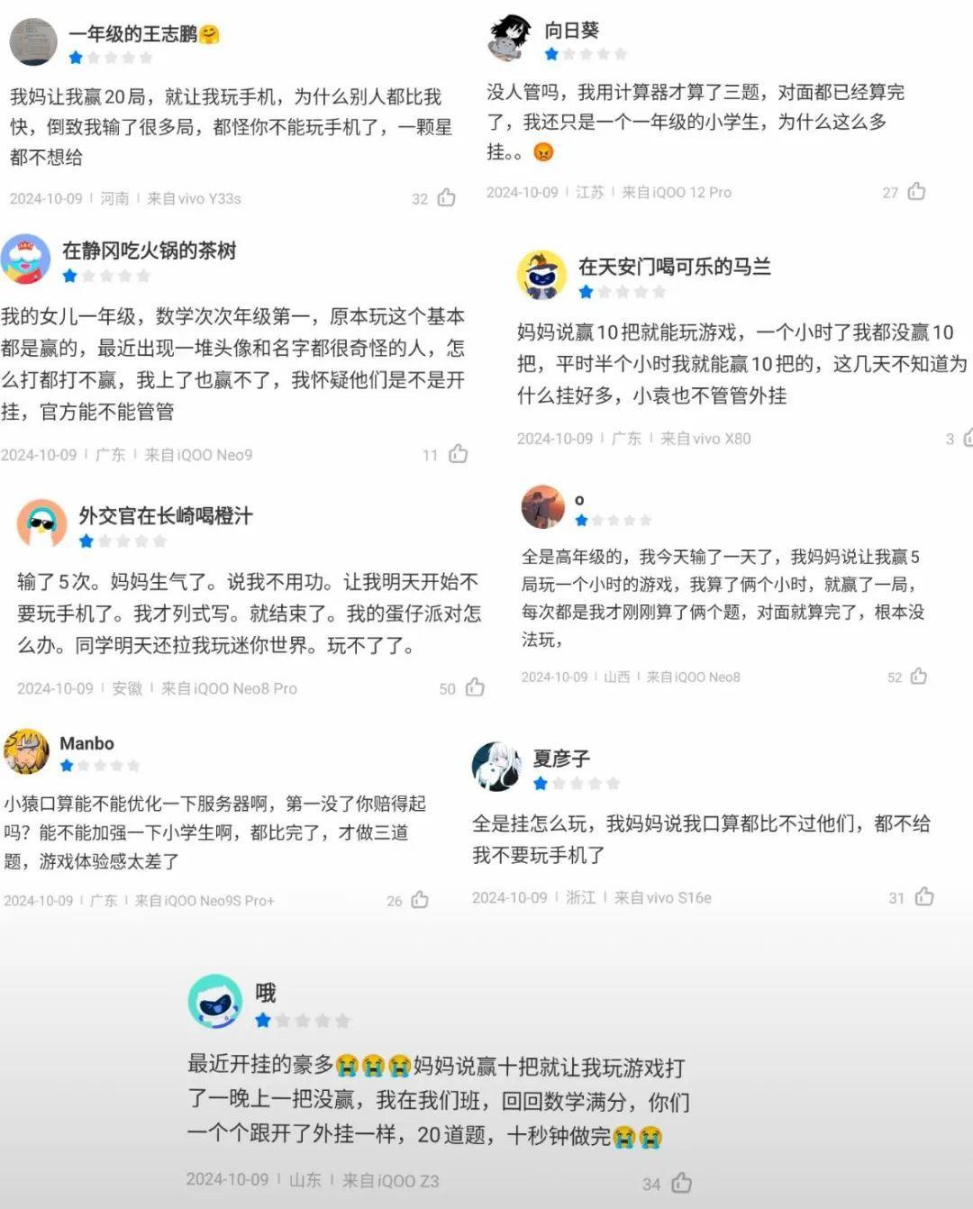 可能小孩子們真生氣了,或者樂子人們不放過每次團建的機會(大概率是後者),現在在小猿口算的應用商店頁面下,也擠滿了海量不知道是反串還是真投訴的評論。