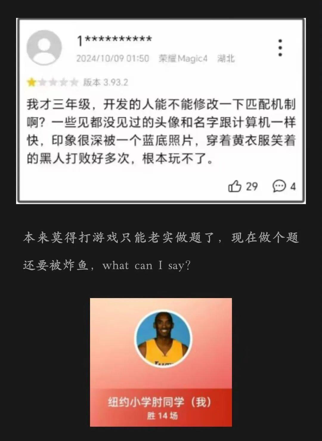 而這種靠踐踏弱者獲得的成就感,偏偏是得益於許多人曾極度厭惡的應試教育,長大後就變成了自己最討厭的樣子。甭管大夥匹配到的有多少是人機,但總歸會有真正的受害者吧?所以這事確實不太地道。