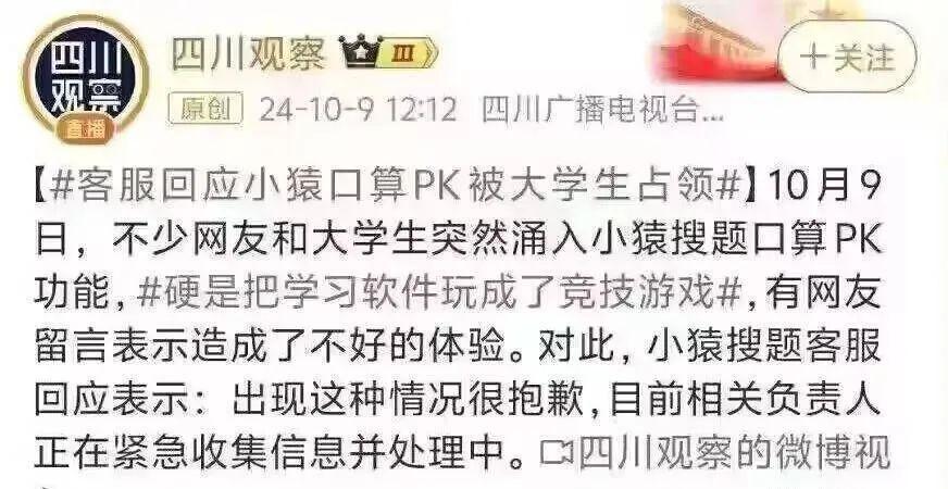小猿口算被大學生佔領,確實不排除背後有厭童情緒作祟,但相比起奶龍梗,攻擊性嚴重性不足,更多也都是圖一樂罷了。網上這種風潮來得快去得也快,往往要不了幾天,大夥就會把這事忘了。那些“祖沖之”“高斯”“華羅庚”們,也都會各回各家,各找各媽了。