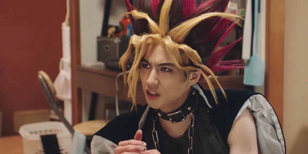 算是比較有經驗的漫改劇演員了。之前日本國民手遊《怪物彈珠》跟《遊戲王》聯動的時候,賀來賢人還拍過Cosplay廣告短劇,飾演諧星版的武藤遊戲。