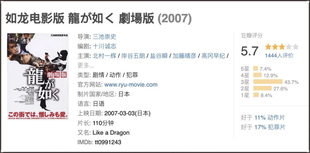 當然,如果你沒玩過《如龍》遊戲、沒有原作情懷的話,倒是可以觀望一下。幾個演員還是挺敬業的,劇本合格、導演不搞事的情況下,整體觀感應該不會特別拉胯。