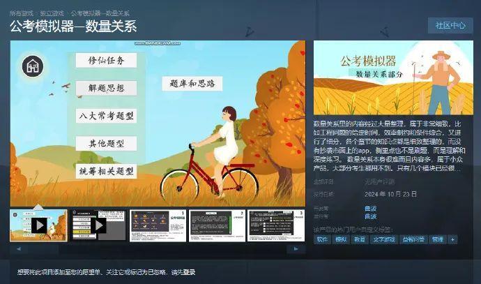 教育模擬遊戲《公考模擬器—數量關係》計劃於10月23日登陸Steam。