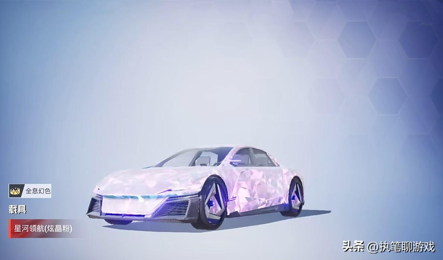 作爲大轉盤級別,既然出現了載具皮膚,自然不會僅有這麼一個。根據目前已知的消息來看,“時空協奏”系列除了前文提到的超跑“時空躍影”(極光粉)外,還出現了遊戲中登場概率最高、時間最久的轎車,它的名字叫“星河領航”(炫晶粉)。