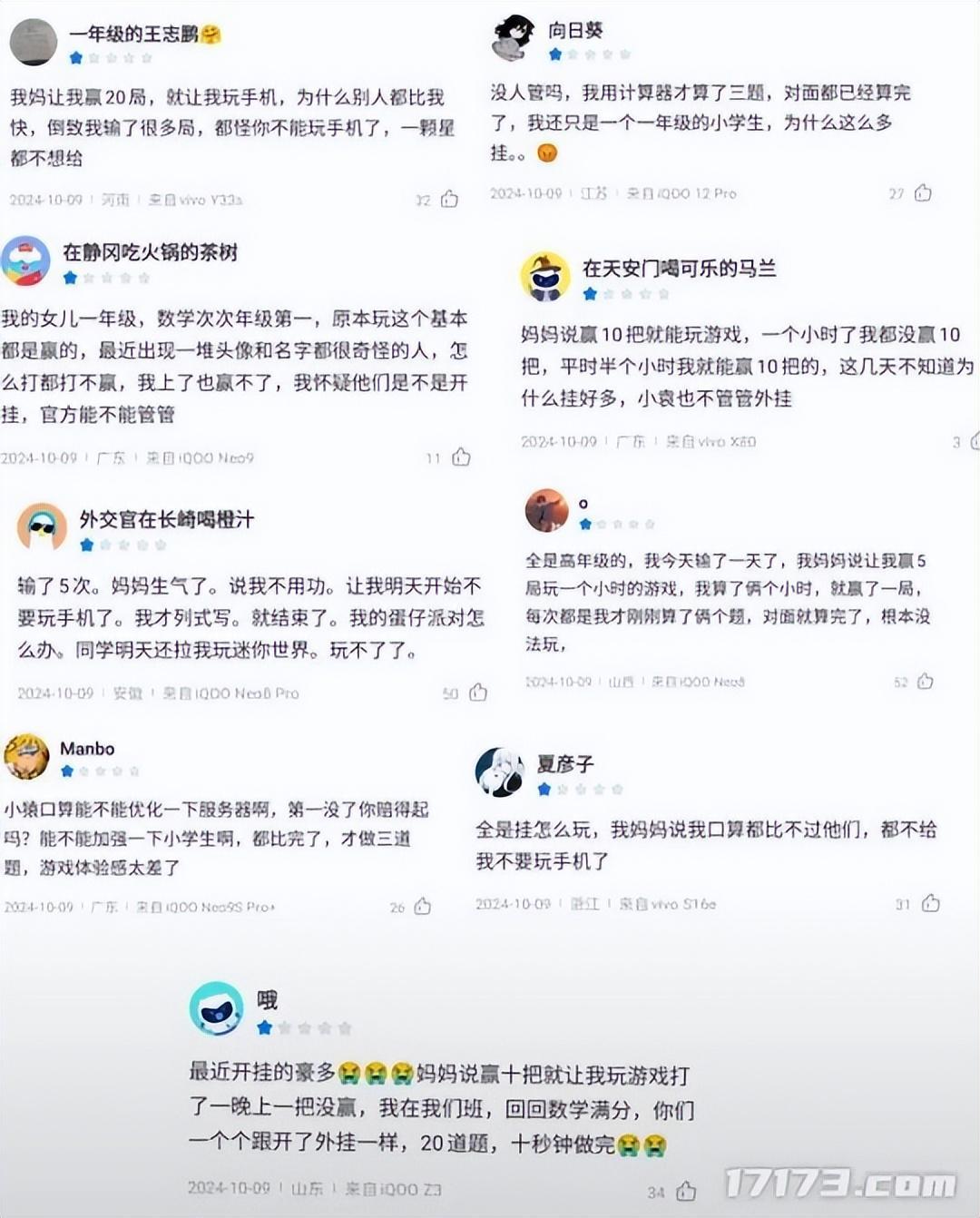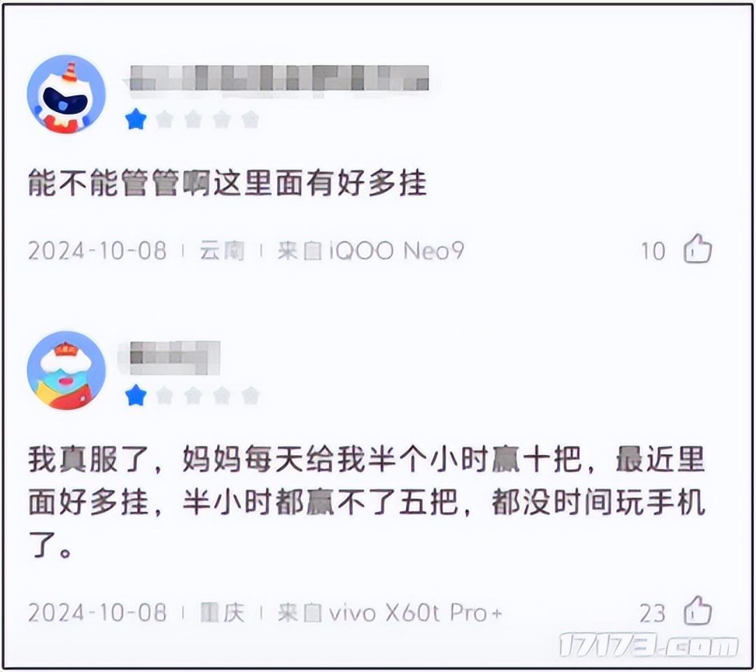 應用程序商店裏,也開始出現一些小學生的評論,說本來自己和父母約好,每天打贏幾局就能玩把遊戲,本來挺好的事,被大學生們攪和了。