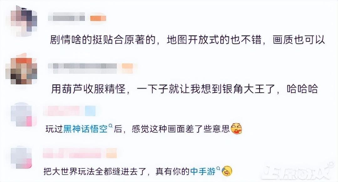 參加了測試的網友表示,劇情啥的挺貼合原著的,地圖開放式的也不錯,畫質也可以。還有網友表示,用葫蘆收服精怪,一下子就讓我想到銀角大王了,哈哈哈。