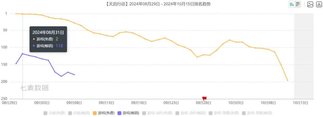 一款競技遊戲,如果核心玩法都不能留住人,那麼即便槍皮好看、英雄酷炫,自然也是回天乏術了。上線一個多月來,《天啓行動》最高曾衝到iOS國區遊戲免費榜Top 1、暢銷榜第118位;到了9月上旬,遊戲就已經跌出了暢銷榜前200位。