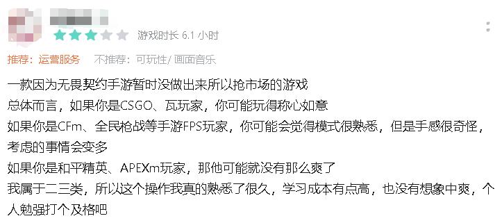 把這些都串起來分析——其實也不需要什麼分析,上面這位玩家說的切身感受,就是最好的總結了:移動端英雄射擊遊戲確實有生態位的空缺,《天啓行動》作爲代餐,也確實能滿足一部分需求,但最核心的品質還不夠到位。如果真是英雄射擊的核心玩家,他們之中的大部分可能都會選擇留在PC端了。